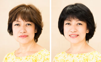 同じ長さのウィッグですが、髪の色で随分印象が変わります。