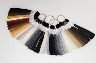 1.頭の型取りをします。お客様の自毛に合わせて髪の色決めます。