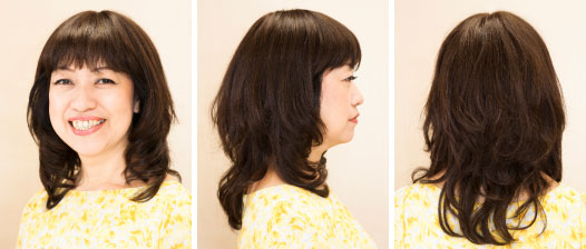 つむじサイズの商品から分け目の白髪隠しぐらいの商品があります。 髪の色など、ご自身にだいたい合う色目とご自身が隠したい部分や、ボリュウムが欲しい大きさご希望に沿ったウィッグがあれば、その場で髪の長さを合わせ、自毛に合わせてパーマやセットさせて頂きます。
